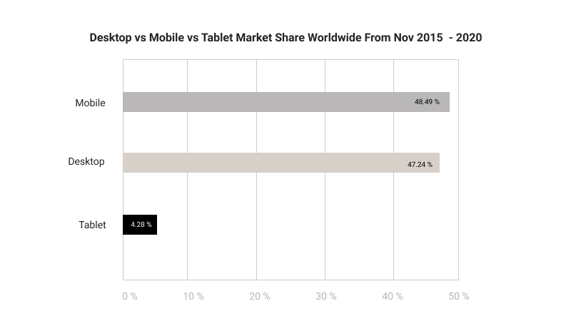 Responsive design คือ การออกแบบเว็บไซต์ให้เปลี่ยนการแสดงผล ไปตามขนาดหน้าจอแสดงผลไปตามหน้าจอขนาดต่าง ๆ อย่างเหมาะสม เนื่องจากผู้ใช้งานเว็บไซต์ มีการใช้งานอุปกรณ์ที่หลากหลาย ทำให้ขนาดและความละเอียดของหน้าจอในอุปกรณ์ที่ผู้ใช้งานใช้มีความแตกต่างกัน ดังนั้นดีไซน์เนอร์จำเป็นต้องดีไซน์ให้รองรับการแสดงผลทุกอุปกรณ์ที่สามารถใช้งาน web browsers ได้ เพื่อให้ผู้ใช้งานสามารถเข้าถึงข้อมูลได้จากทุกอุปกรณ์ โดยเฉพาะอย่างยิ่งบนมือถือ เนื่องจากสถิติภายใน 5 ปีที่ผ่านมาตั้งแต่ เดือนพฤศจิกายน 2015 ถึง เดือนพฤศจิกายน 2020 พบว่าจำนวนผู้ใช้งานอินเตอร์เน็ตบน Mobile มีมากที่สุด รองลงมาจะเป็นผู้ใช้งานเป็น Desktop และ ตามมาด้วย Tablet ตามลำดับ