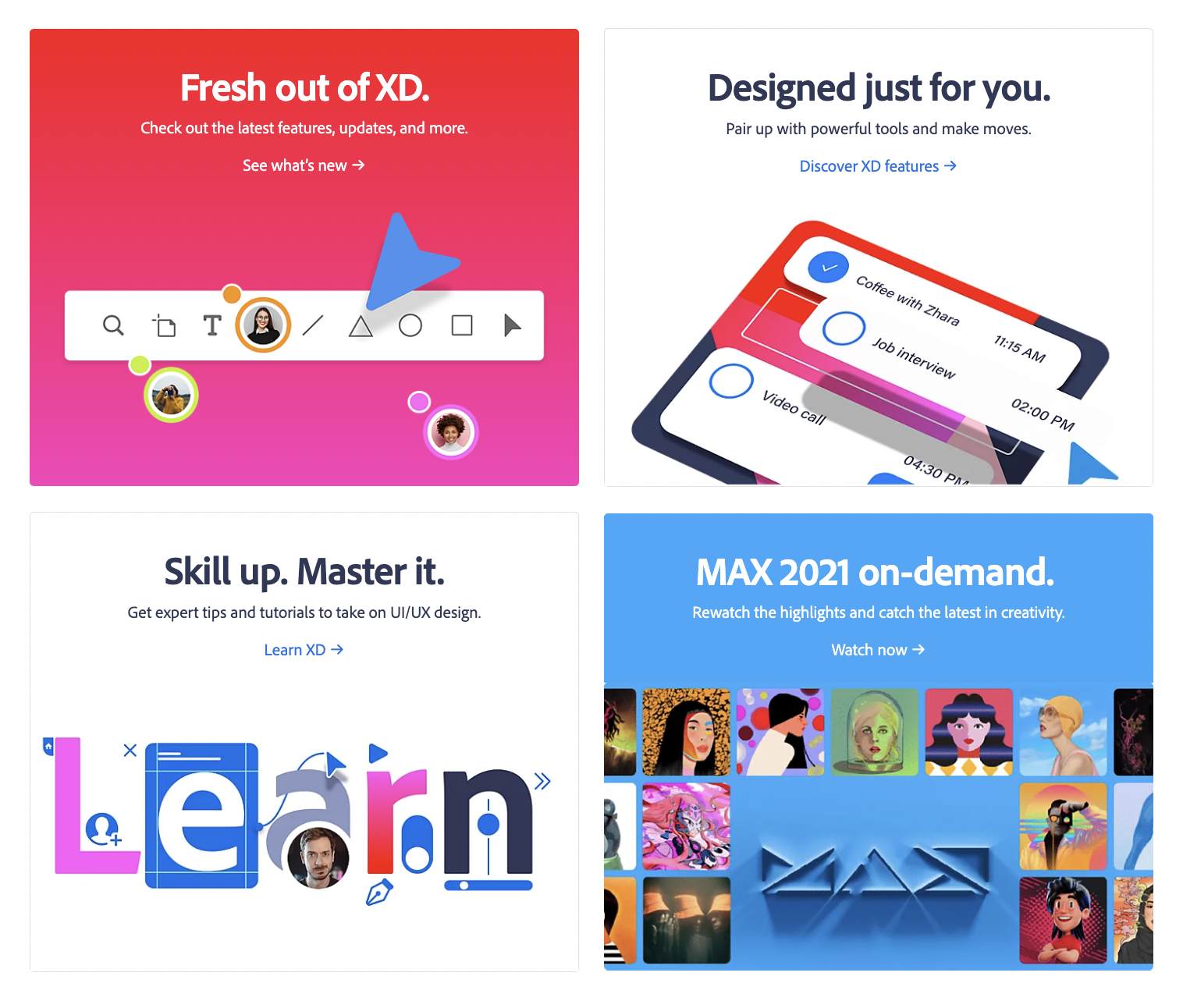 มาถึงตัวสุดท้ายจากตระกูล Adobe อย่าง Adobe XD ที่หลาย ๆ คนต่างพูดเป็นเสียงเดียวกันว่าเป็นโปรแกรมที่ใช้ง่ายมาก ๆ อาจจะเพราะมาตรฐานของความเป็น Adobe ซึ่งเราคุ้นเคยจากการใช้งานโปรแกรมอื่น ๆ ของตระกูลนี้อยู่ก็เป็นได้