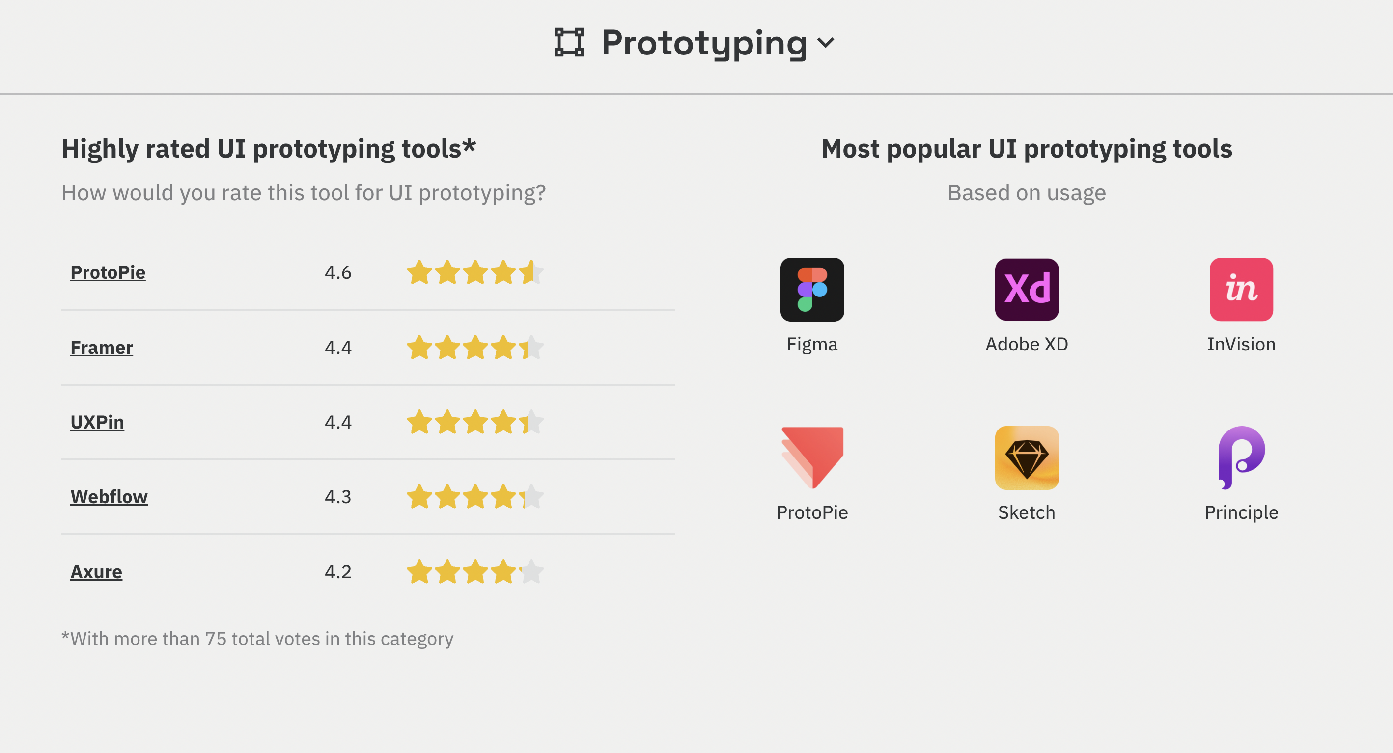 Figma ครองแชมป์ความนิยมจากเหล่าดีไซน์เนอร์หลายปีติดต่อกันจากผลสำรวจของ uxtools.co ไม่ว่าจะเป็นในส่วนของ User Interface ในส่วนของการสร้าง Prototype ในส่วนของ handoff และส่วนของการทำ Design Systems ดีไซน์เนอร์ส่วนใหญ่จากผลสำรวจล้วนแล้วแต่เลือกใช้ Figma กันทั้งนั้น